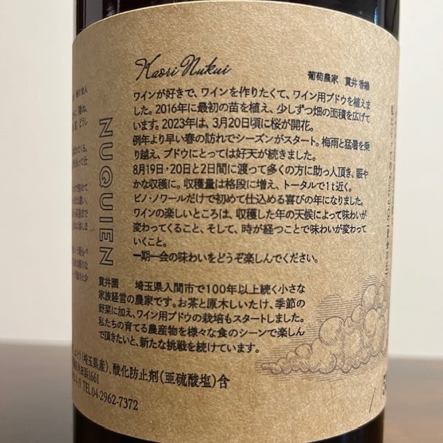 埼玉県入間市 貫井園とカーブドッチワイナリー醸造家 掛川史人が手掛けるコラボワイン。