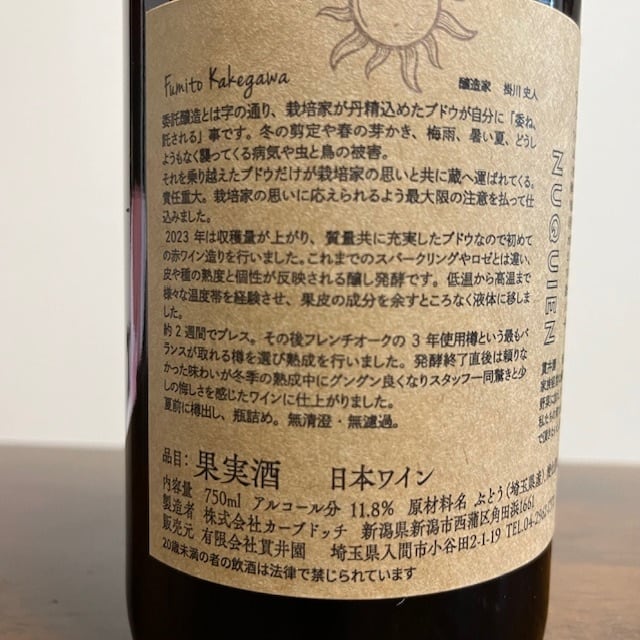 埼玉県入間市 貫井園とカーブドッチワイナリー醸造家 掛川史人が手掛けるコラボワイン。